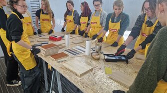 Druhá část školení byla zaměřena na praktické dovednosti. Studenti si vyzkoušeli představené systémy povrchových úprav nábytku a vyzkoušeli si jejich ruční nanášení, které jsou vhodné pro malé dílny a školní prostředí.