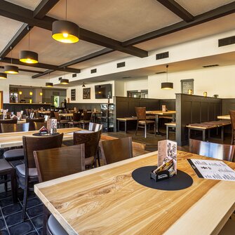 Truhlářství Hilfe s.r.o. realizovalo interiér restaurace v Kraslicích s mořidlem Arov...